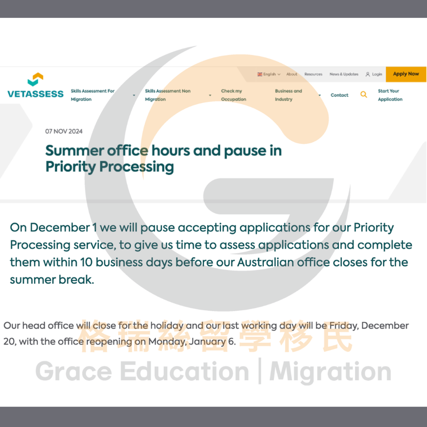 也就是说,从现在开始,想要在本年度递交职业评估,并拿到结果的赶上年末的州担或者189的同学,现在是最后申请加急的机会啦~