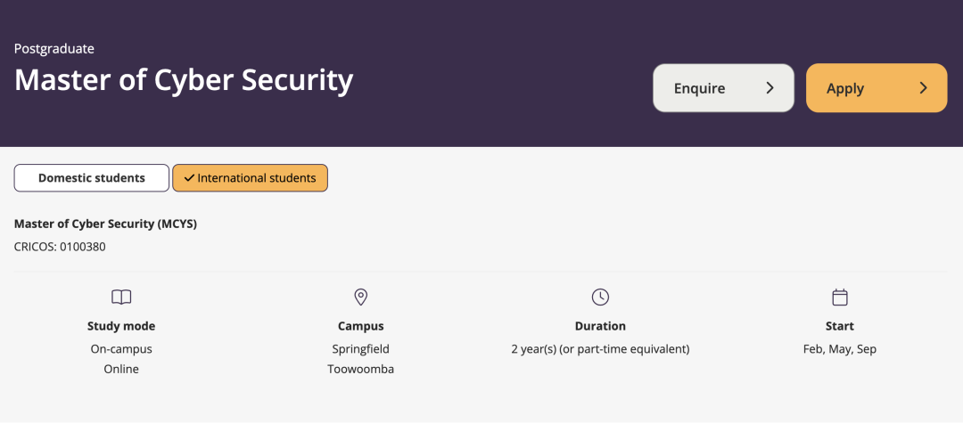 ✅ UniSQ(University of Southern Queensland)(提供网络安全方向的专业硕士课程)