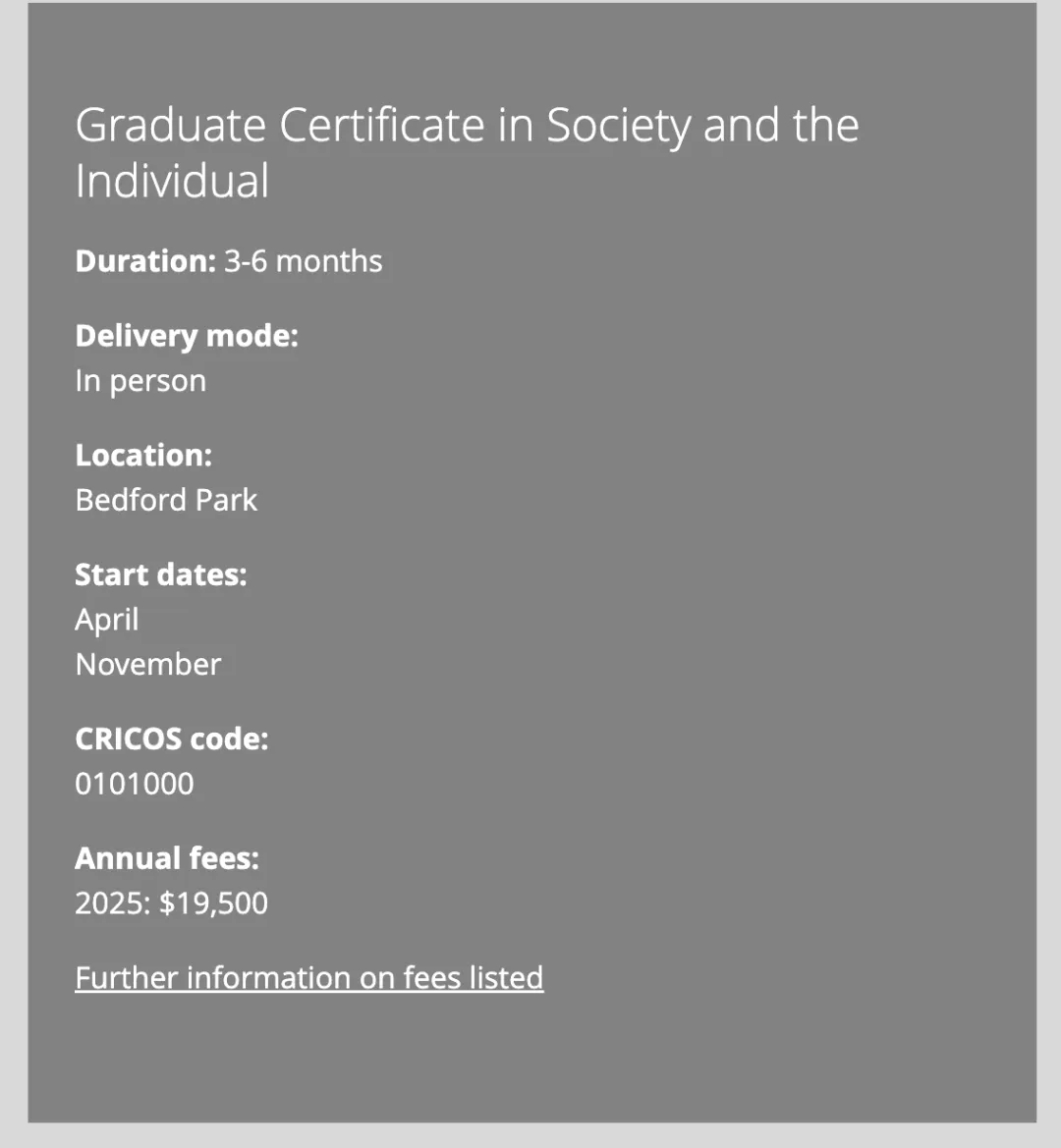 ✅ 橋樑課名稱:Graduate Certificate in Society and the Individual