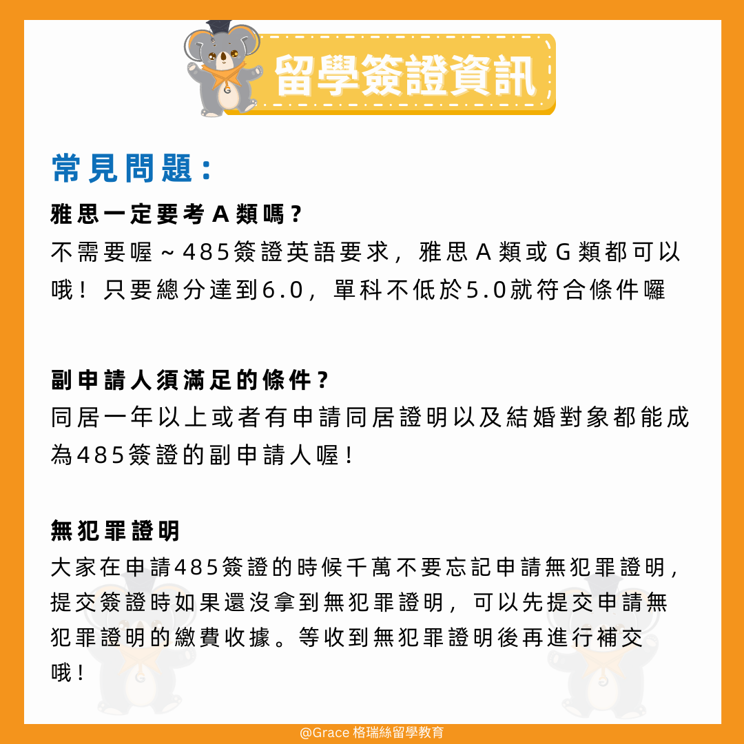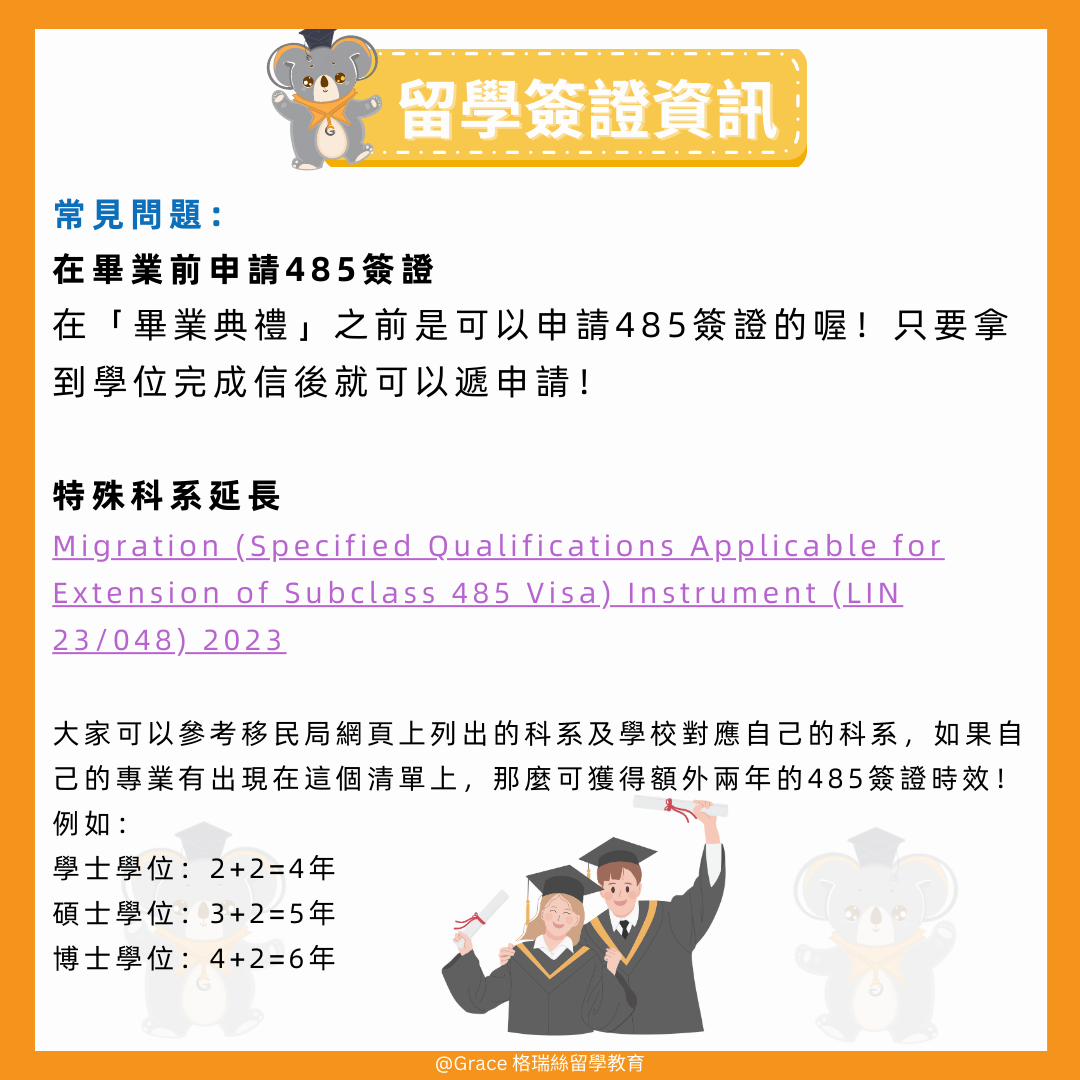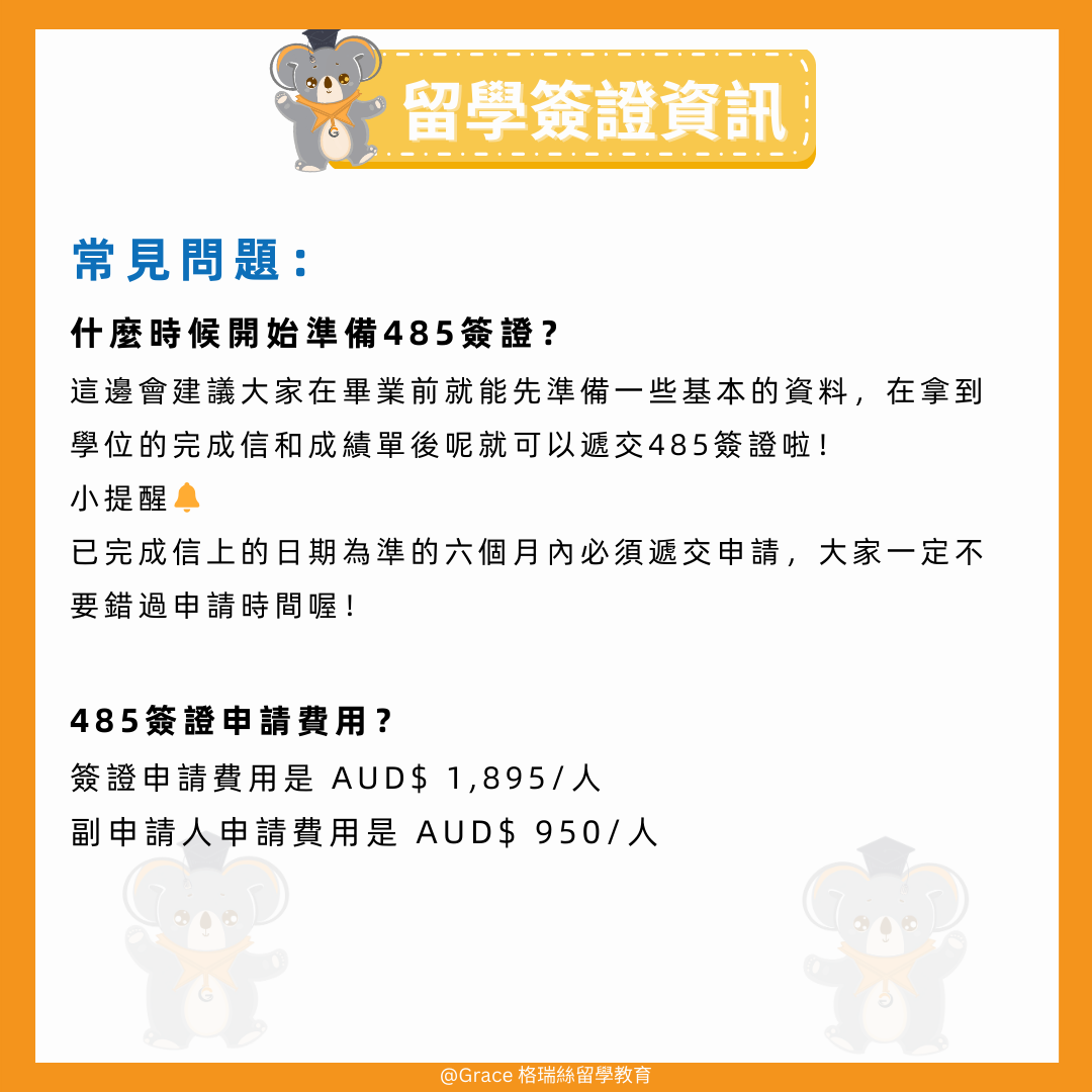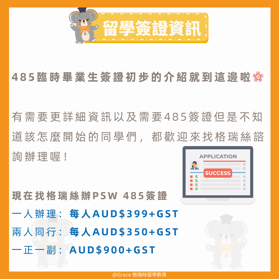 【485 臨時畢業生Visa】 有需要辦理485簽證的同學,快點來找格瑞絲喔~ 【聯繫Grace】 Line:🔎graceedu WeChat🔎graceedu-mkt 讓我們幫助您邁出留學移民的第一步👣 ———————————————————— 格瑞絲留學移民 Grace Education 成立於1994年 成立旨於為留學與移民澳洲的莘莘學子和家長做全方位的專業諮詢除了提供高水準專業諮詢外也讓顧客體會格瑞絲更多貼心親切的服務 (MARN 1791073) #485visa #485畢業簽證 #澳洲留學移民 #澳洲留學 #澳洲生活 #澳洲移民 #澳洲 #澳洲大學