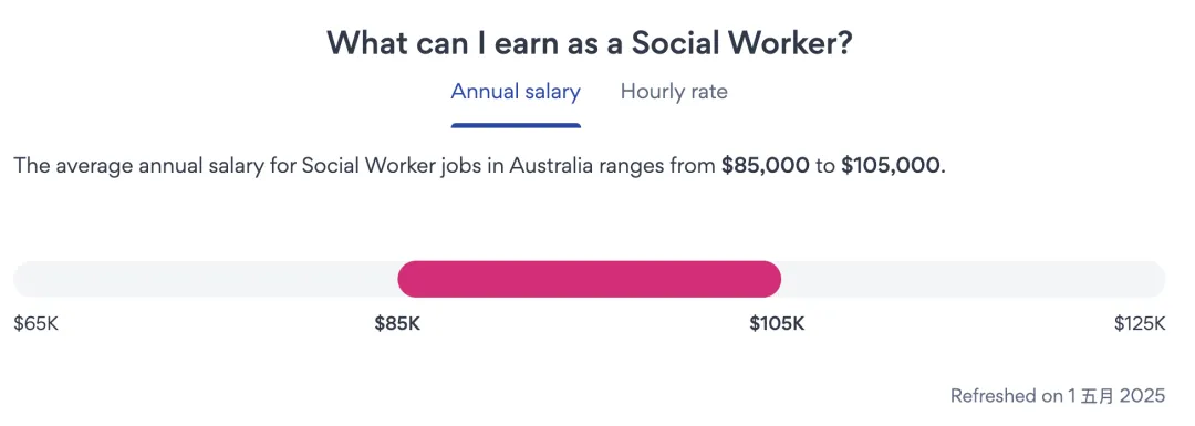 隨著工作經驗的提升,收入也會逐步增長,資深社工的年薪可以達到 $90,000–$100,000+ 澳元。特別是在偏遠地區或特殊項目中,社工需求更大,薪資待遇也會更具競爭力。