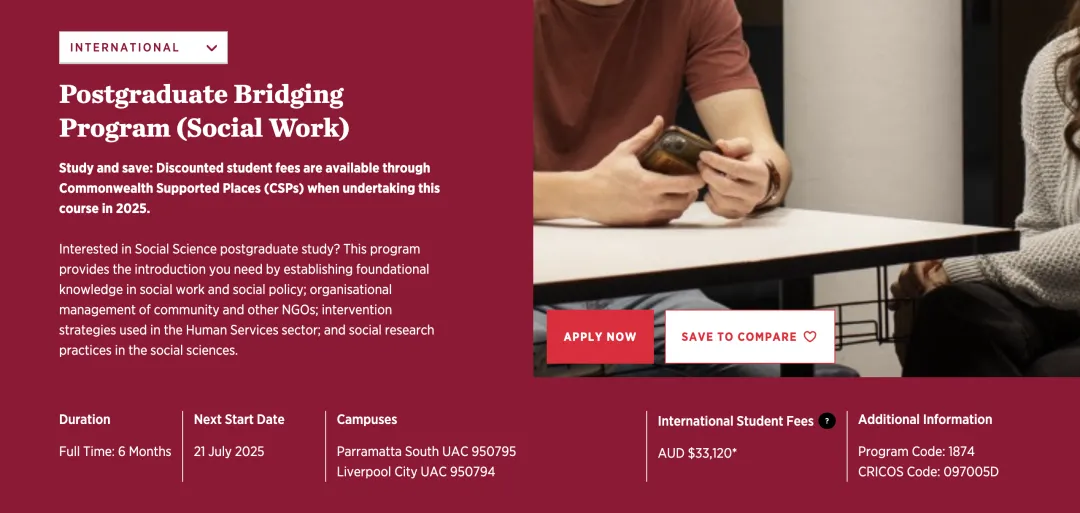 比如,需要同學們有社工相關專業的本科背景,或有相關執業證明,再或者有讀過Graduate Certificate等相關課程。對於跨專業的同學來說並不友好,因此,我們今天特意為大家整理了6所高校的社工橋樑課程!